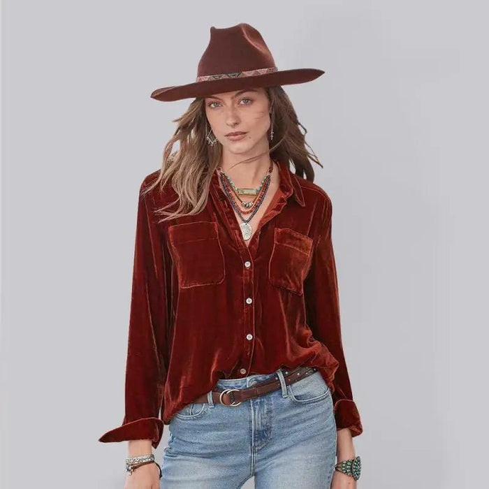 Crafted from plush velvet, this button-up shirt is updated with pockets and features a classic spread collar.