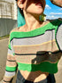 New street sexy colorful striped short navel-baring knitted sweater pullover