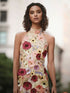 New women's embroidered three-dimensional flower halter neck slim dress small dress