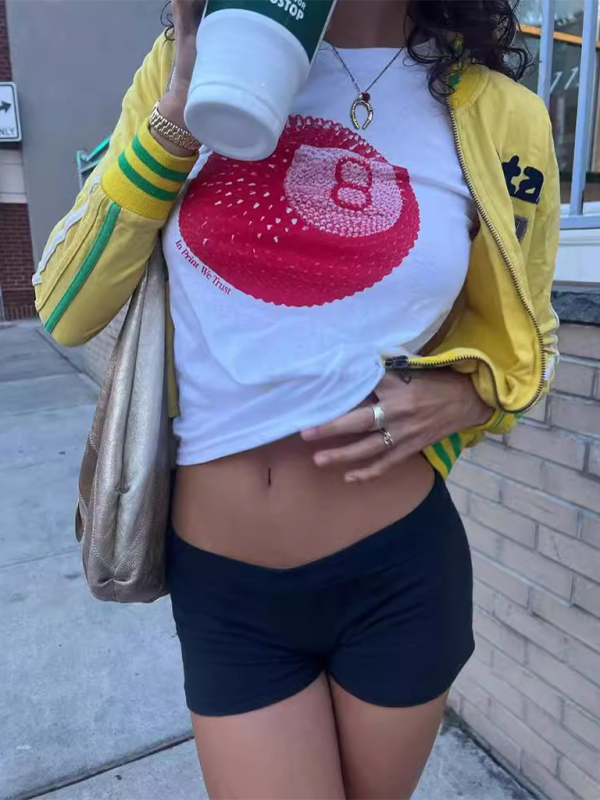 Round neck hot girl short slim sexy print navel-baring short sleeve T-shirt