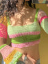 Women's new square collar colorful striped color block handmade crocheted long-sleeved top