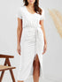 Women's Solid Color V Neck Short Sleeve Drawstring Slit Dress