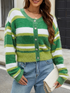 Women's Casual Round Neck Short Knit Cardigan Long Sleeve Stripe Color Clash Sweater