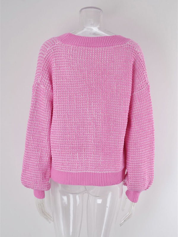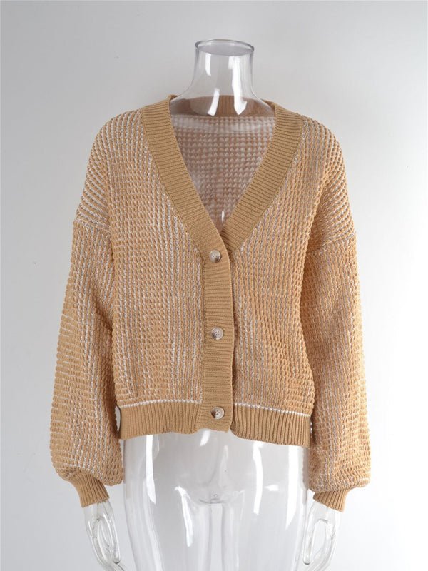 Diese warme Strickjacke hat einen gerippten Rand und ein Waffelmuster. Sie hat eine vielseitige, bezaubernde und stilvolle Form mit einem Knopfverschluss vorne und süßen Puffärmeln.