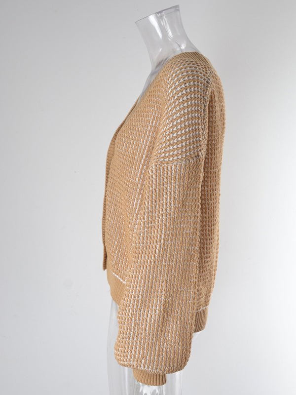 Waffelstrick-Cardigan für Damen mit Puffärmeln