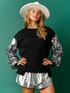 Weihnachts-Paillettenärmel-Oberteil Patchwork Langarm Trendy Sweatshirt
