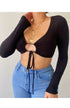 Ausgehöhlte Schnür-Langarmbluse mit V-Ausschnitt und sexy Damen-T-Shirt