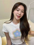 Kurzes Y2K-T-Shirt mit Buchstabenmuster für Damen