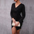 Schwarzes V-Ausschnitt-Reparatur-Langarmkleid für Frauen nach innen