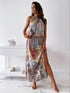 Böhmisches Print-Neckholder-Taillen-Schlitzkleid für Damen