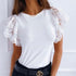 Lässiges farbiges T-Shirt mit Rundhalsausschnitt und Spitzenblütenärmeln