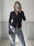 Neue modische, schlanke, einfarbige, hohle, durchsichtige Spitzen-Strickjacke mit langen Ärmeln für Damen