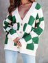 Damen-Cardigan mit Schachbrettmuster, lässig, lockerer Knopfleiste