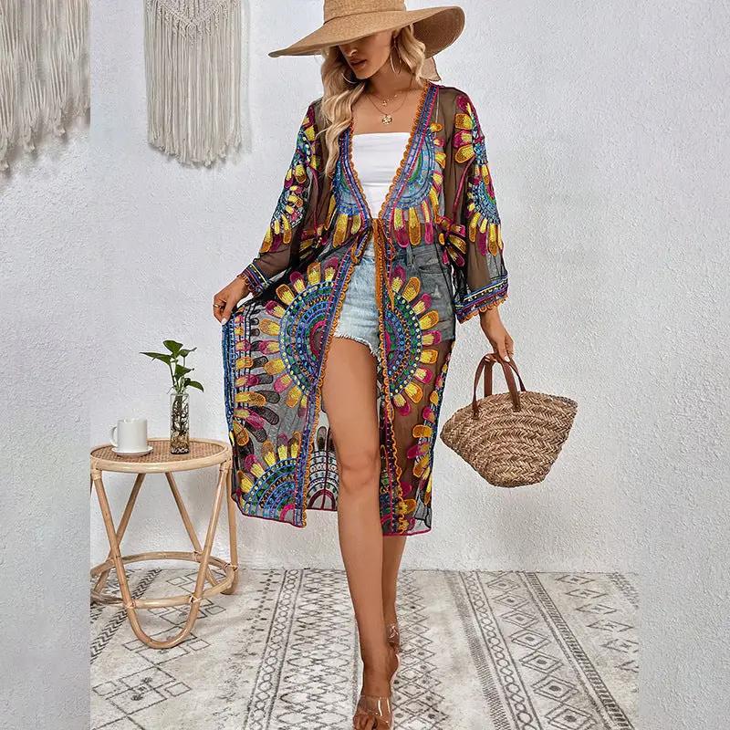 Material: Dieser Strandrock-Cardigan besteht aus 100 % Polyester, ist leicht und atmungsaktiv, perfekt für heiße Sommertage am Meer.