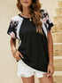 Damen-T-Shirt mit Flatterärmel-Print und kontrastierenden Einsätzen