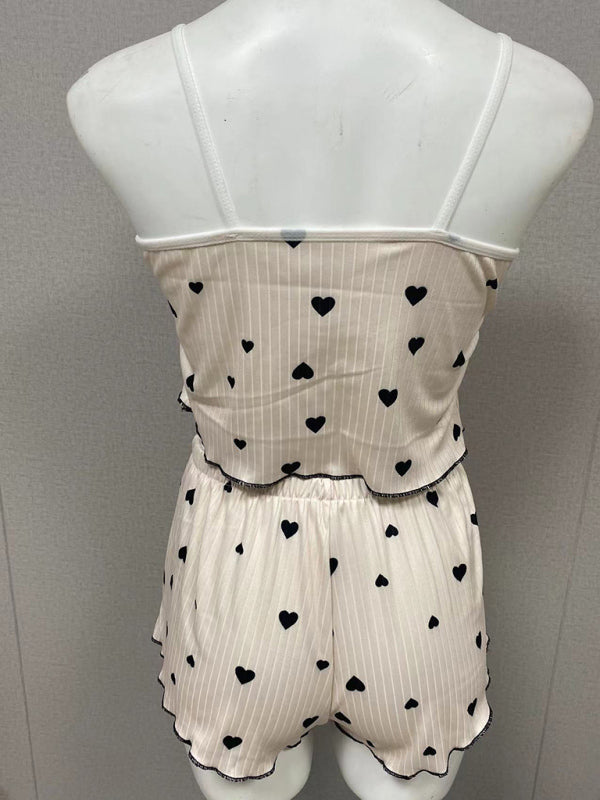 Sexy Pyjama-Set mit Herz-Print und Farbkontrasten vorne, Schlitz und Sling