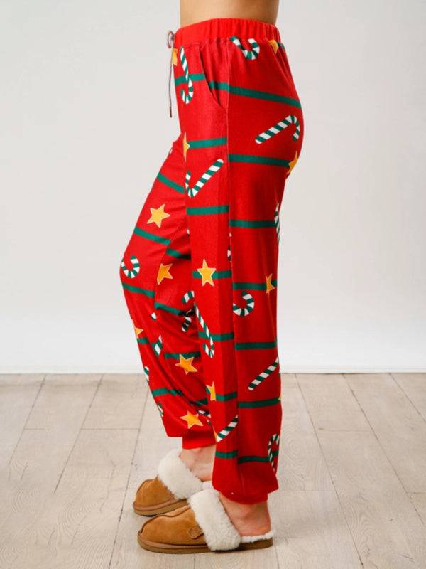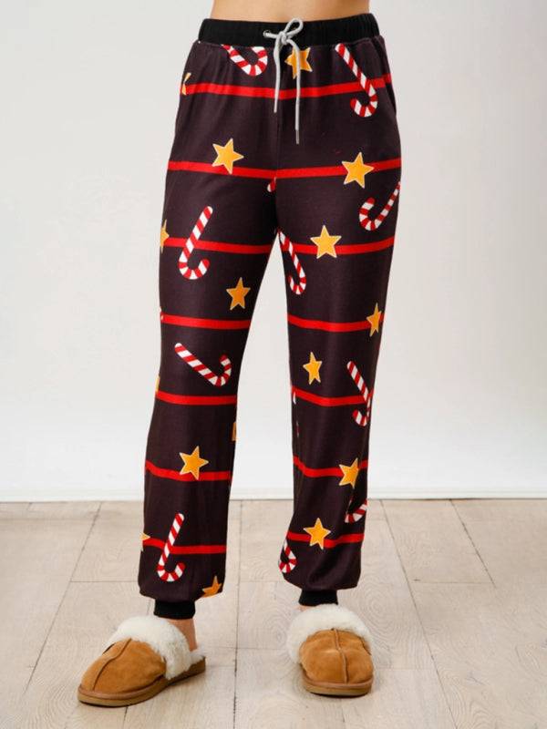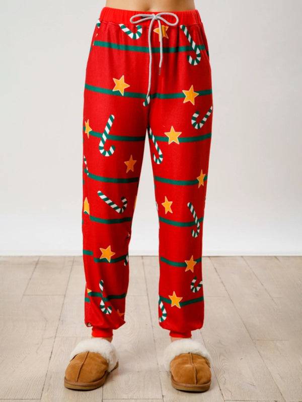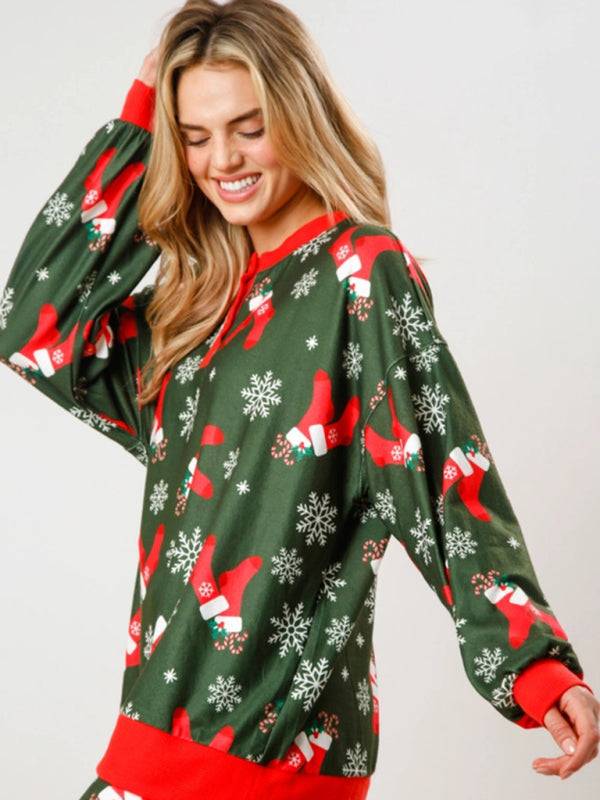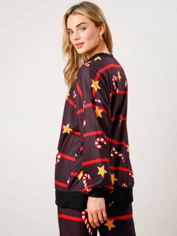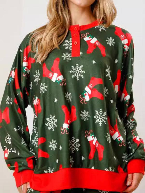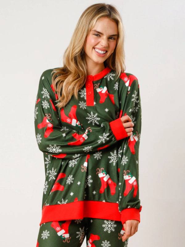 New Christmas Print Button Long Sleeve Two-piece Set Fashion Casual Home Clothes Set