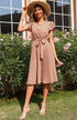 Damenkleid mit bedrucktem Rock und plissiertem V-Ausschnitt