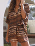 New casual holiday short-sleeved cardigan + shorts printed home two-piece set