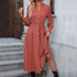 New long-sleeved solid color versatile strappy henley collar shirt dress