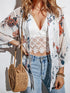 New plant floral print chiffon shirt casual buttonless cardigan top