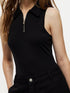 Quarter Zip Collared Neck Sleeveless Bodysuit