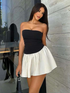 Women's Fashionable One-Neck Contrast Color Pleated Slim Fit Dress