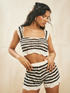Women's sexy short navel-baring halter top with hollow air-quality shorts and striped suit