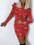 Christmas round neck snowflake print slim fit Christmas long-sleeved dress