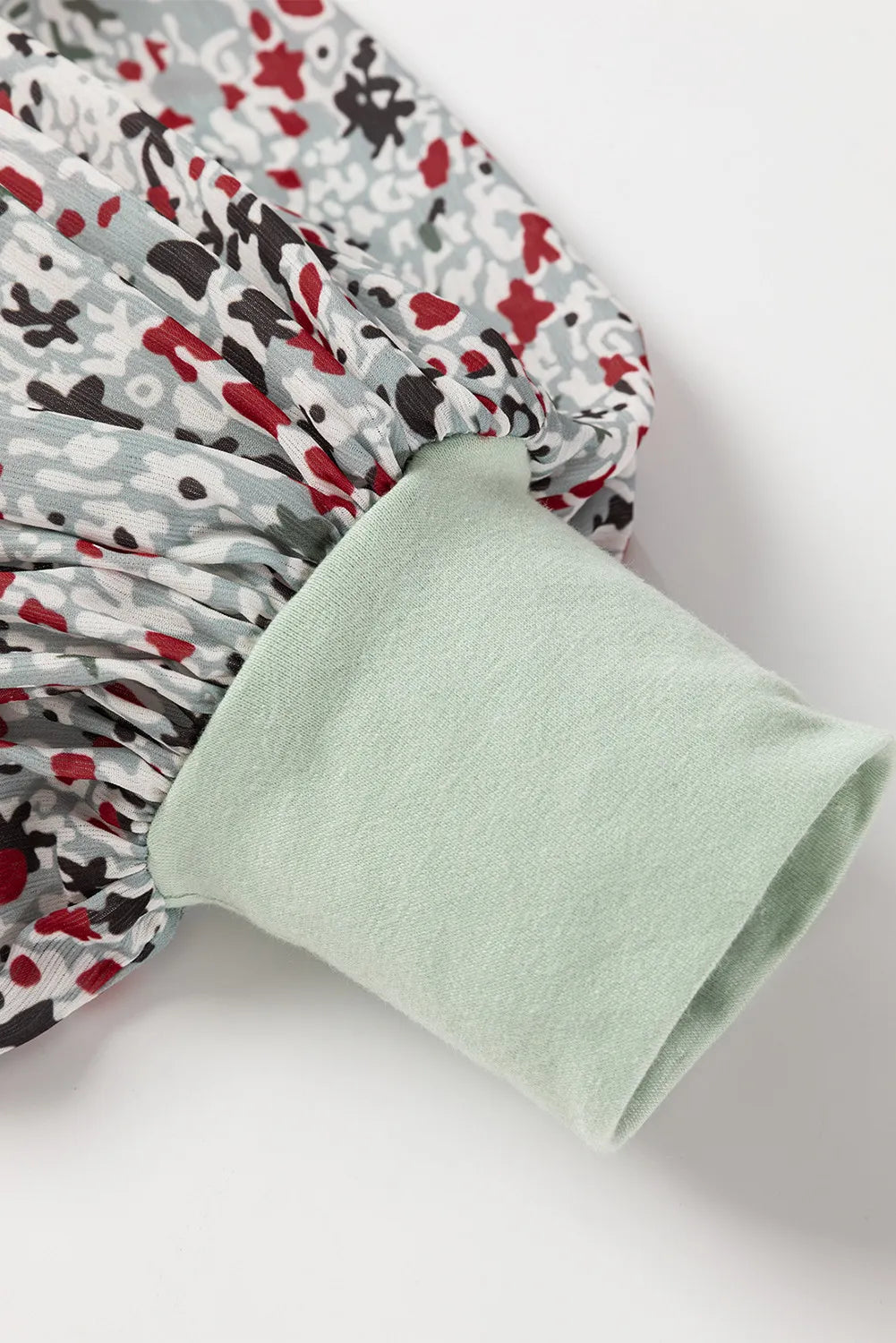 Printed Notched Long Sleeve Blouse