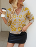 Jacquard V-neck long-sleeved single-breasted knitted sweater coat