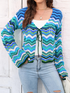 Rainbow Wave Woven Cardigan Sweater with Monochrome Stripes