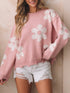 Women's Drop Shoulder Floral Pearl Loose Sweater