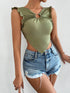 This Women's irregular lower back lace-up ruffled top is a stylish addition to any wardrobe. The unique lace-up back adds a touch of edginess, while the ruffled upper adds a feminine flair. Made of 95% Polyester, 5% Elastane, this top is perfect for all seasons and occasions.