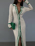 New slim fit lapel patchwork women's long sleeve cardigan dress