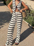 Women's new retro casual V-neck strappy striped top + striped pants knitted suit