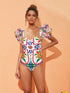 Women's new ruffled enamel print beach vacation one-piece swimsuit