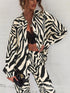 Women's printed long-sleeved off-shoulder shirt and trousers 2-piece suit