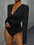 Perfee Lace Detail Plunge Long Sleeve Bodysuit