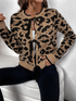 New leopard bow tie knit sweater fall and winter long-sleeved cardigan tops