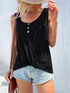 Material: Crafted from a blend of 35% polyester and 65% cotton, this tank top offers a soft and comfortable feel, perfect for all-day wear. Design: Featuring a button knot detail at the crewneck, this tank top adds a touch of modern chic to your wardrobe, making it a versatile and stylish piece. Styling: Pair this solid color tank top with high-waisted jeans or a skirt for a trendy and effortless look that can easily transition from day to night. Occasion: Ideal for casual outings, summer parties, or even as a layering piece under a blazer for a more polished ensemble. Season: This tank top is perfect for the warmer seasons, providing a lightweight and breathable option for staying cool and stylish.
