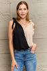 Perfee Contrast Color V-Neck Tie Shoulder Tank Top