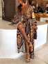 Bohemian V-neck retro positioning flower long-sleeved dress