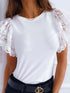 Casual Color Round Neck Top Lace Petal Sleeve T-Shirt
