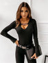 Chain decoration sexy long-sleeved bottoming shirt sexy elegant top