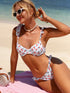 Cherry print ruffled holiday white bikini