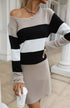 Ladies Round Neck Pullover Color Block Sweater Dress