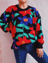 New large flower embroidered round neck loose long sleeve knitted sweater pullover