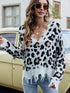New Pullover Cropped V Neck Leopard Fringe Knit Sweater