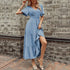 New summer European and American popular style V-neck mid-length dress